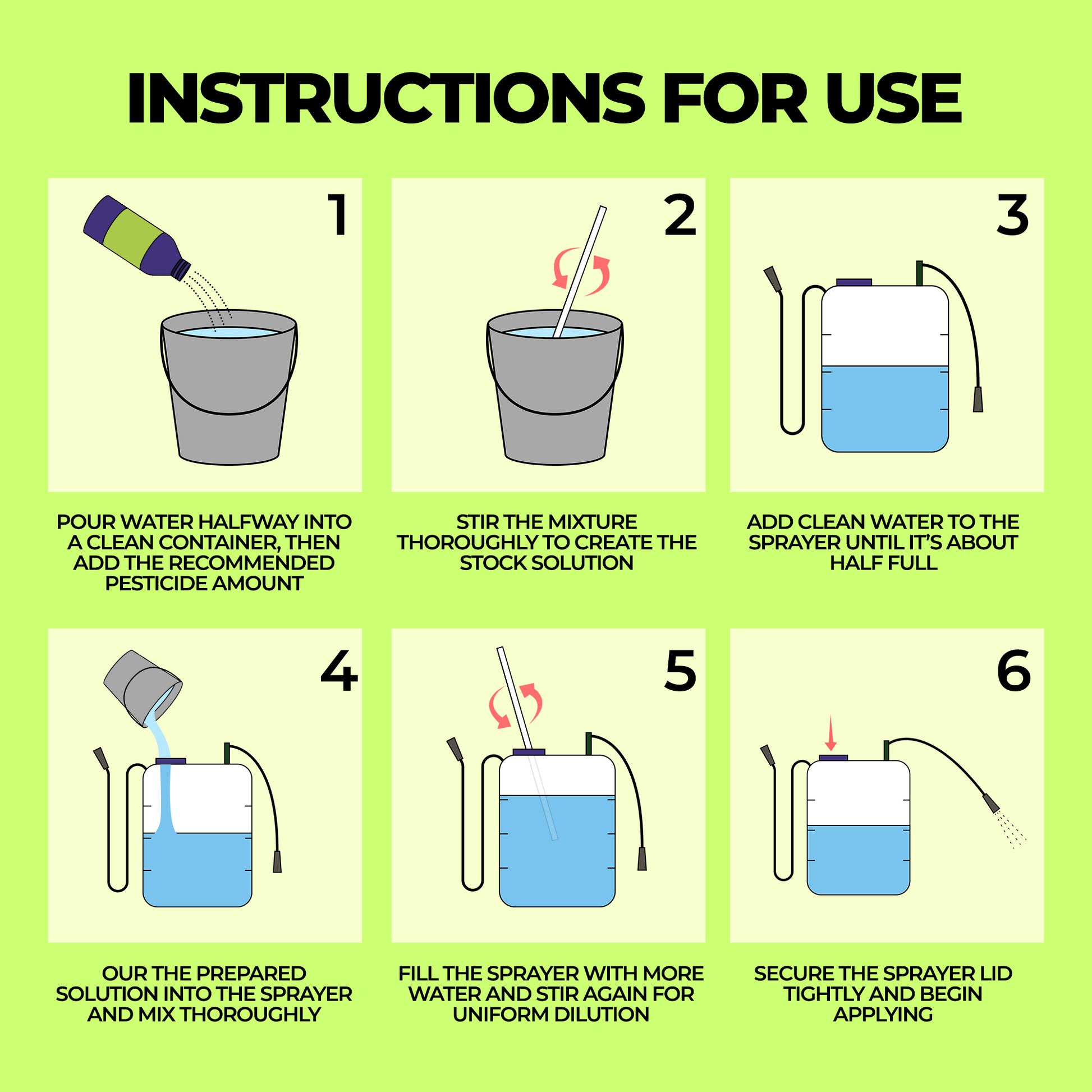 Apply during dry, calm weather using a sprayer, preferably early morning or late afternoon. Avoid application before rain.